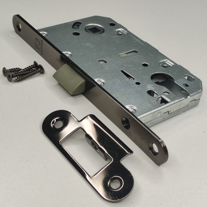 Межкомнатный механизм Vettore 410 410 C-S BLACK NI. Корпус задвижки изготовлен из оцинкованной стали, лицевая и ответная планка имеют качественное гальваническое покрытие.