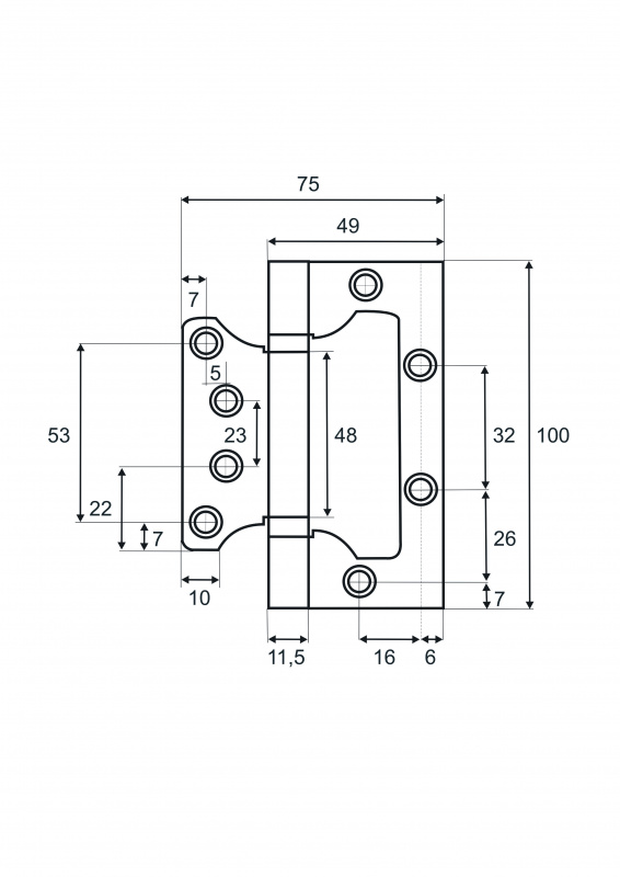Петля накладная VETTORE FLUSH 100×75×2.5mm GR (Графит)