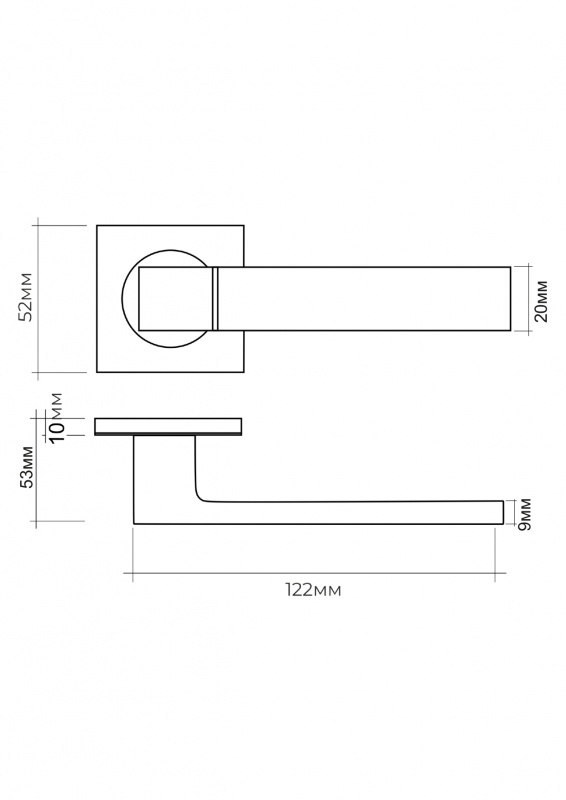 Комплект: две ручки на одно дверное полотно, монтажный комплект, соединительный квадрат (8мм*8мм*110 мм).