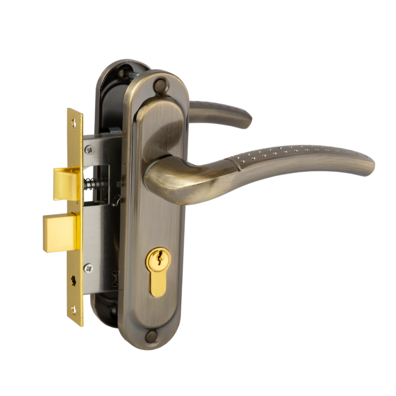 Замок врезной BASARA 1126 AB m60 в комплекте с ручкой и цилиндром (Бронза)
