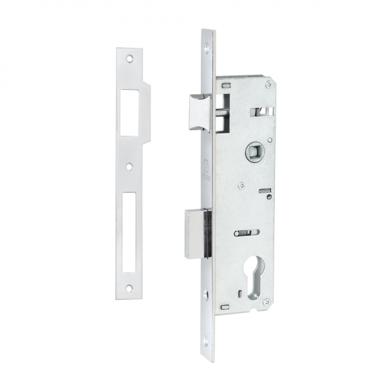Замок VETTORE 153-35 CP врезной цилиндровый универсальный с защелкой для пластиковых (ПВХ) дверей.