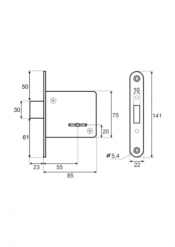 Замок врезной сувальдный. Предназначен для установки в деревянные двери до 50 мм. Прямоугольный ригель, вылет 22 мм.