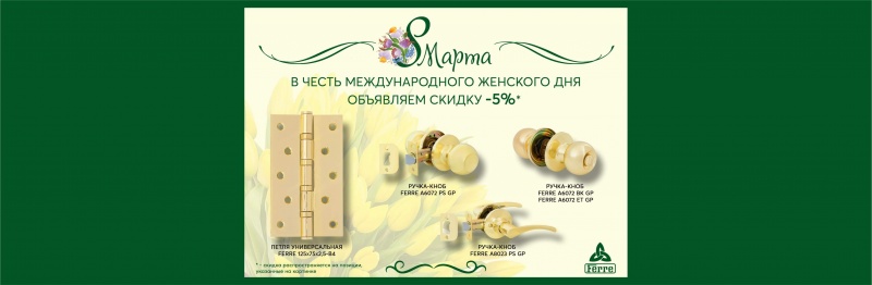 В преддверии самого прекрасного праздника в году объявляем СКИДКУ 5% на товары для межкомнатных дверей.