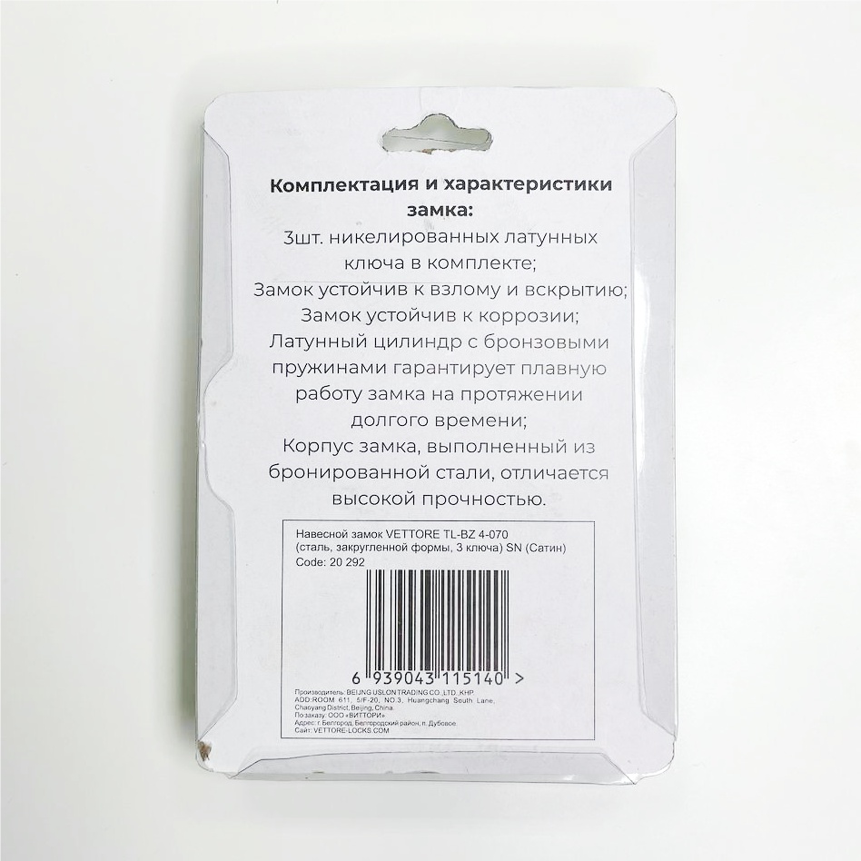 Хотите купить хороший навесной замок? Тогда Замок VЕTTORE TL-BZ это то, что вам нужно!