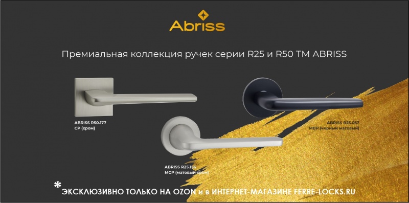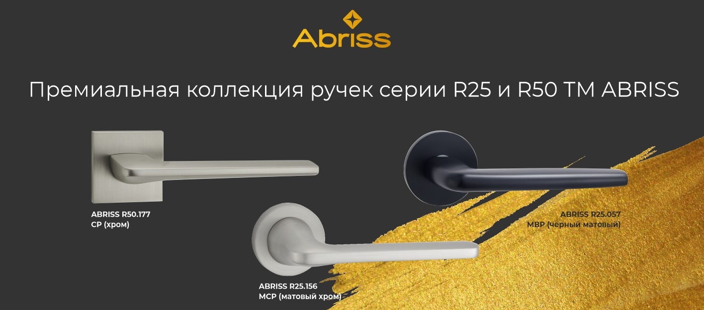 Дверная фурнитура ТМ ABRISS – это стильный дизайн, безупречное качество и лаконичность форм. Наши дверные ручки украсят современный интерьер жилого и офисного помещения.