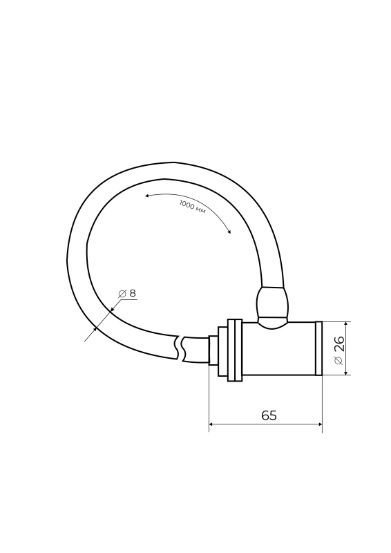 Стальной трос — в пластиковой оплётке (6/8мм – диаметр, 650/800/1000мм – длина).