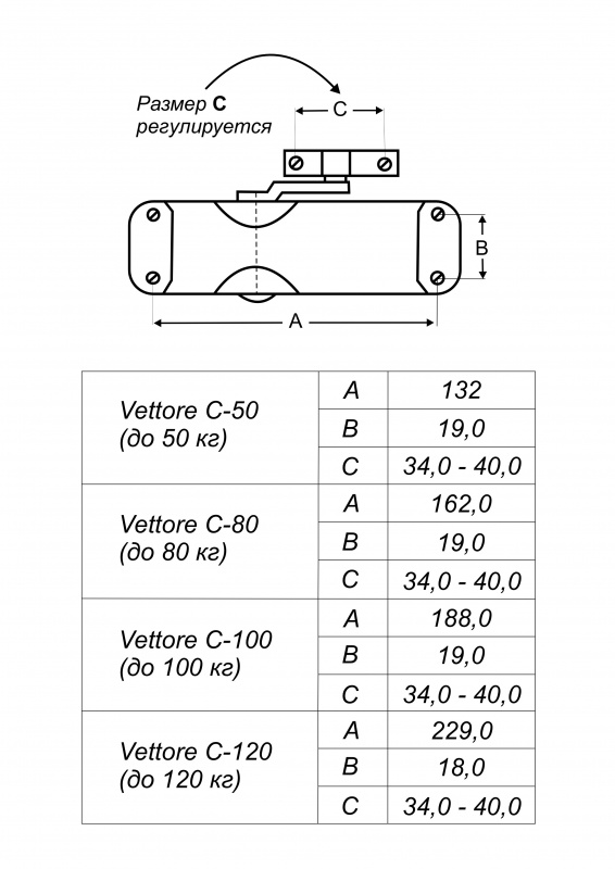 Доводчик дверной VЕTTORE C - 50 - W предназначен для плавного, автоматического закрывания открытых дверей.