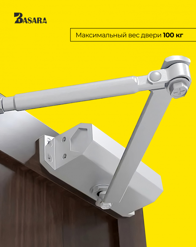 Дверной доводчик BASARA C-100-W уличный устанавливается на железные, металлические, деревянные, пластиковые дверные полотна. Имеет накладной формат.