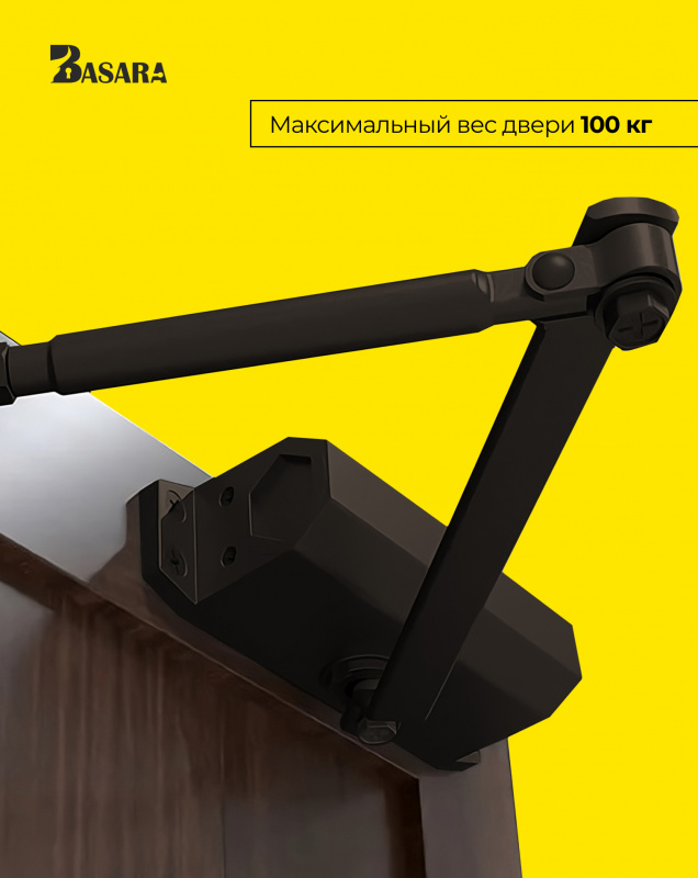 Дверной доводчик морозостойкий BASARA C-100-BR Коричневый для входной / наружней или межкомнатной двери весом от 80 до 100 кг работает при температуре от -25 до +50 градусов.