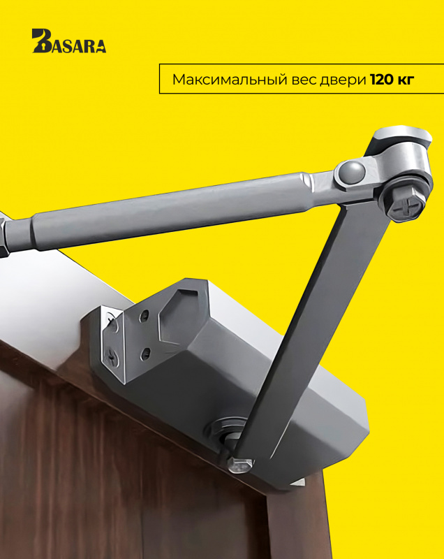 Дверной доводчик BASARA C-120-S уличный устанавливается на железные, металлические, деревянные, пластиковые дверные полотна. Имеет накладной формат.