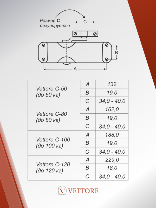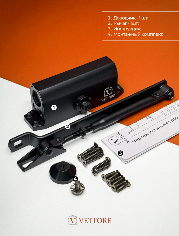 Доводчик дверной VЕTTORE C - 50 - BL предназначен для плавного, автоматического закрывания открытых дверей.