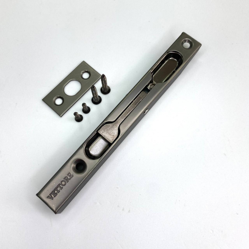Торцевой шпингалет для входной и межкомнатной двери, задвижка дверная, щеколда для калитки, накладная задвижка VETTORE 140 GR обеспечит надежное запирание входных и межкомнатных дверей из дерева, металла, пластика, а также дверей калиток и ворот.