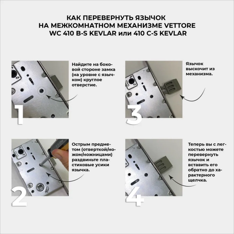 Межкомнатный механизм Vettore 410 C-S KEVLAR MWP. Корпус задвижки изготовлен из оцинкованной стали, лицевая и ответная планка имеют качественное гальваническое покрытие.