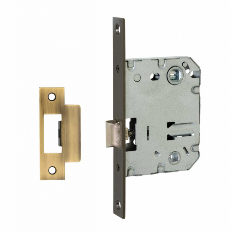 Защелка дверная / замок врезной / сантехнический межкомнатный механизм VETTOREWC 170 AB (Бронза) предназначен для установки на деревянные межкомнатные двери, двери в санузел и ванную комнату в комплекте с раздельной ручкой и фиксатором. Замок обеспечит надежную защиту помещения.