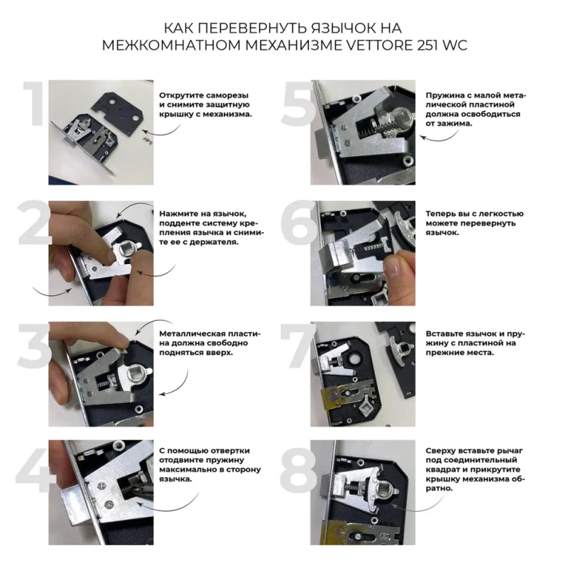 Замок VETTORE WC 251 AB оснащен язычком из кевлара - высокопрочного пластика.