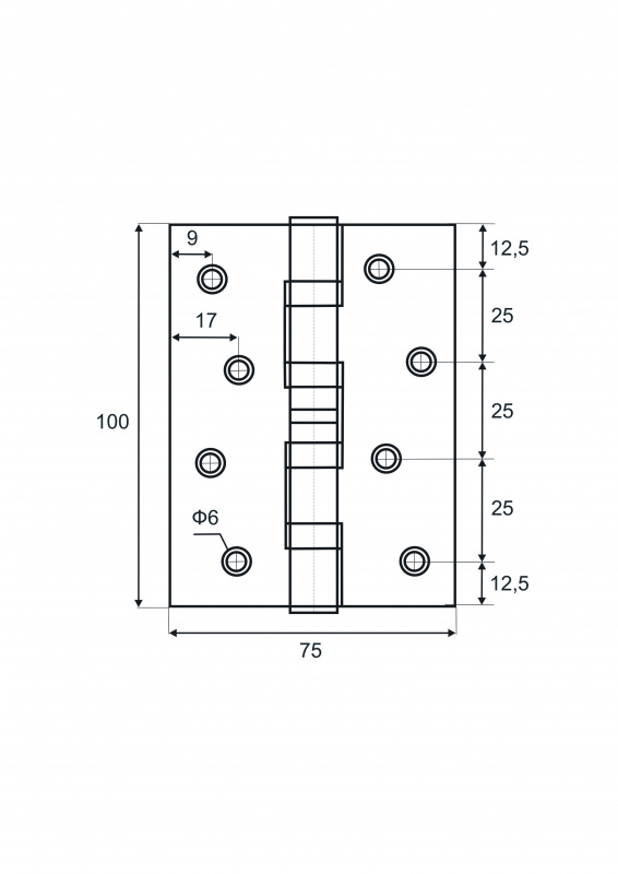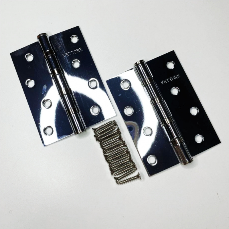 Комплект дверных петель карточных универсальных с врезкой VETORE 100×75×2.5mm – 4BB CP выполнен из нержавеющей стали и подойдет для установки на дверное полотно весом до 30-40 кг.