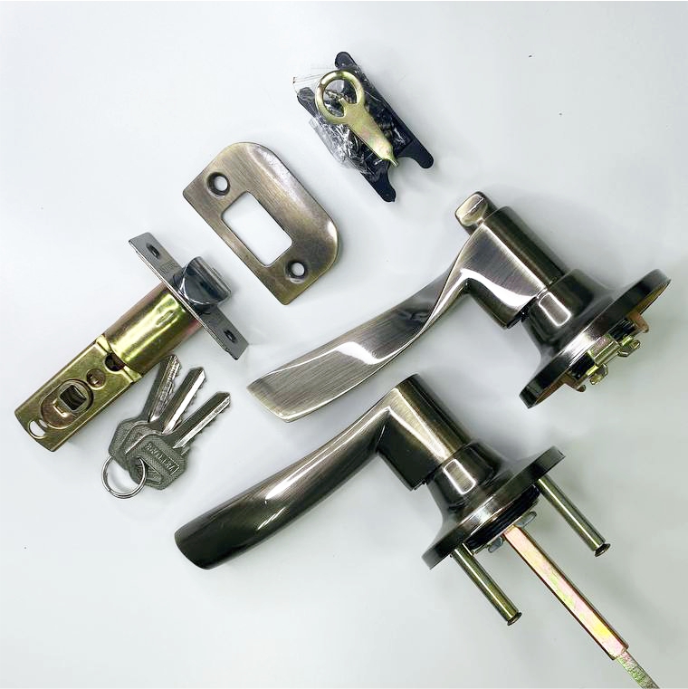 В комплекте: две ручки на одно дверное полотно, защелка, ответная планка, монтажный комплект, 3 ключа.