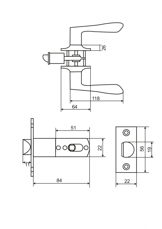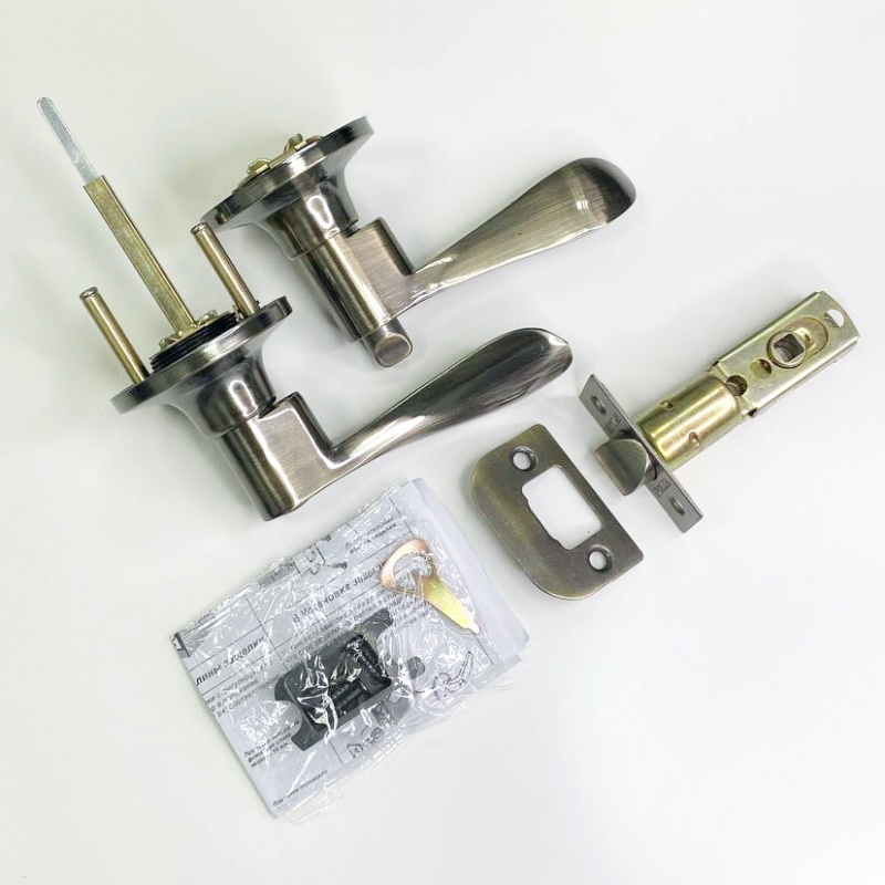 Комплектация: ручка дверная, защелка, монтажный комплект, соединительный квадрат.