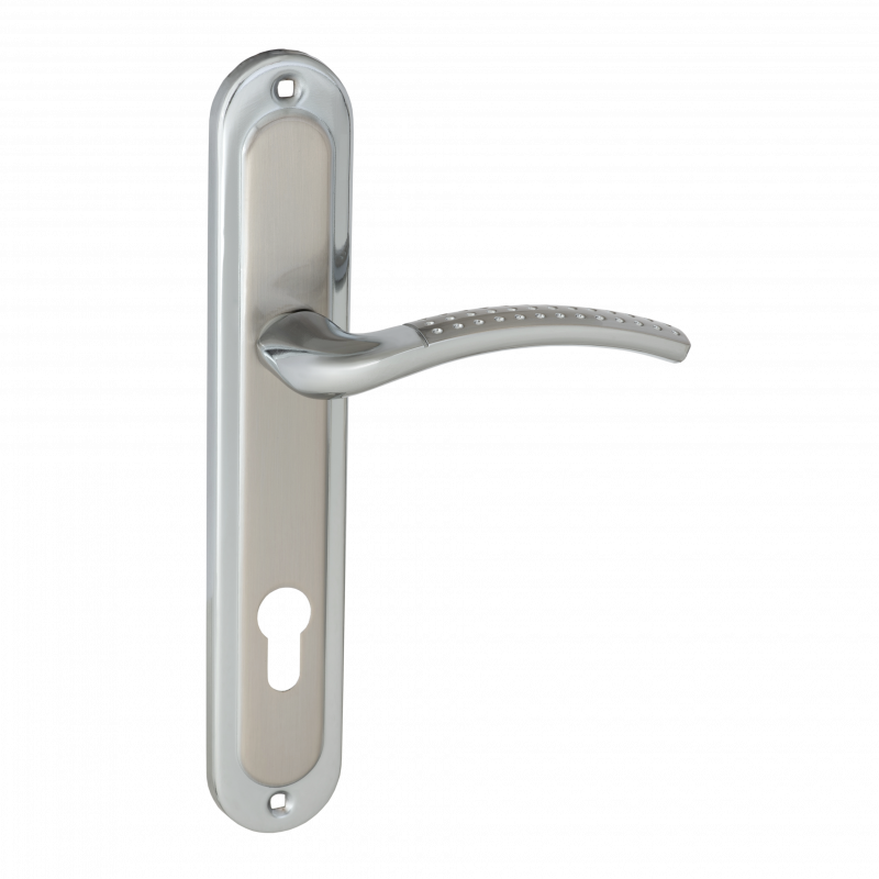 Ручка VЕTTORE 85.326 AL SN/CP (алюминий) (Сатин/Хром) предназначена для установки на входные двери.