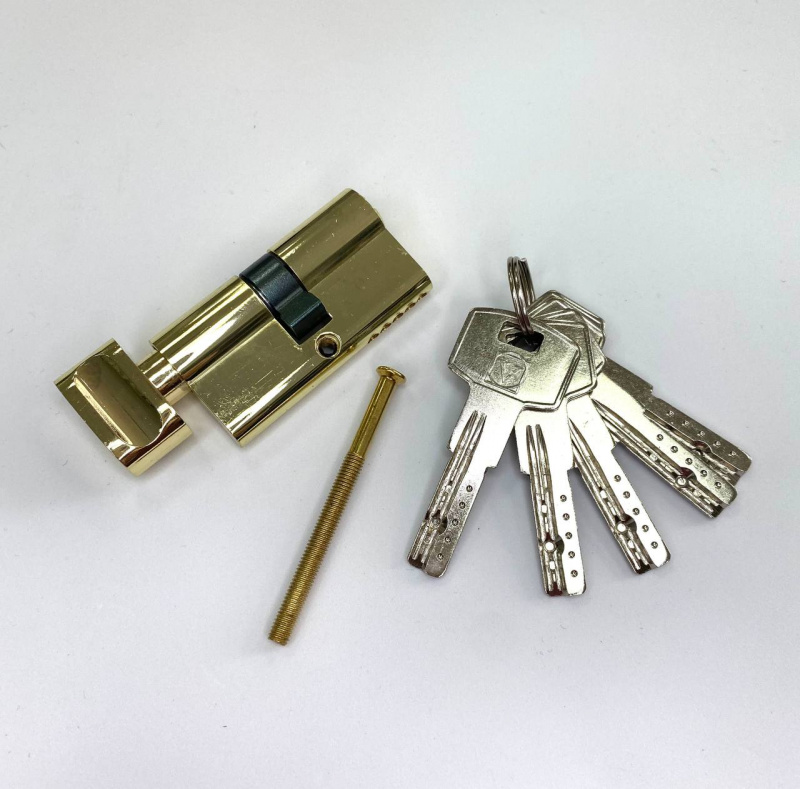Дверной цилиндровый механизм / личинка / цилиндр для металлических и деревянных внутренних и внешних дверей VETTORE ZN M80 (30T*50) GP Золото, ключ - завертка обеспечит защиту общественных и жилых помещений, комнат, ванной и санузла. Может быть установлен совместно с врезными замками, сантехническими магнитными и кевларовыми механизмами.