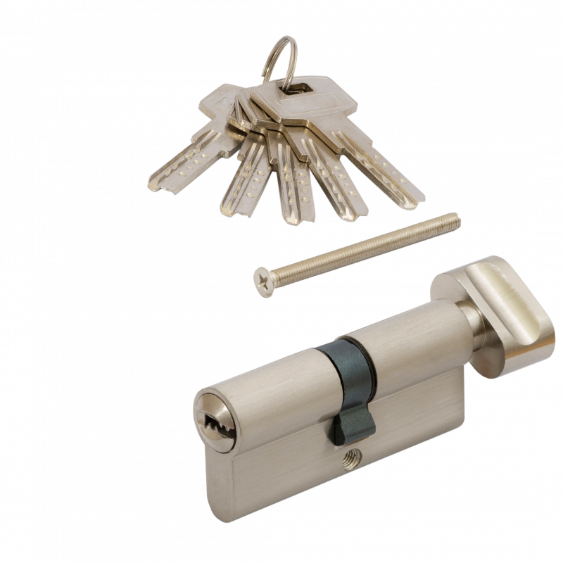 Дверной цилиндровый механизм / личинка / цилиндр для металлических и деревянных внутренних и внешних дверей VETTORE ZN M90 (40T50) NI Никель, ключ - завертка обеспечит защиту общественных и жилых помещений, комнат, ванной и санузла.