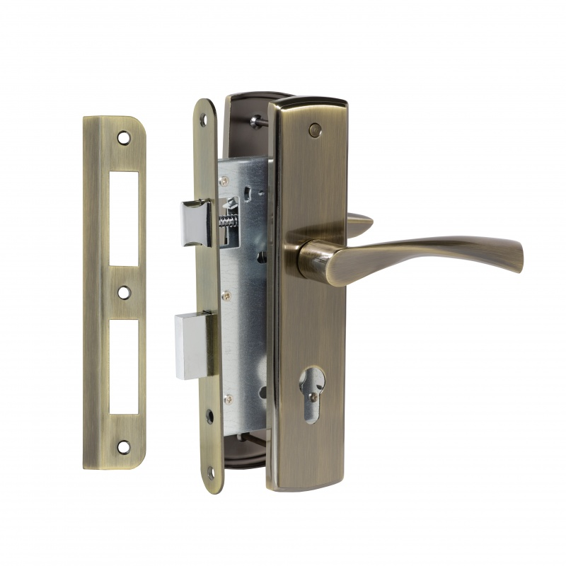 Замок врезной VЕTTORE 7255-2 АВ (Бронза) в комплекте с ручкой на планке для входных дверей дополнит интерьер жилого и офисного помещения.