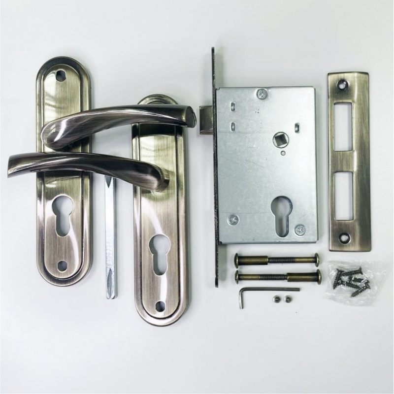 Замок врезной VETTORE 5523-2 AB в комплекте с ручкой (Бронза)