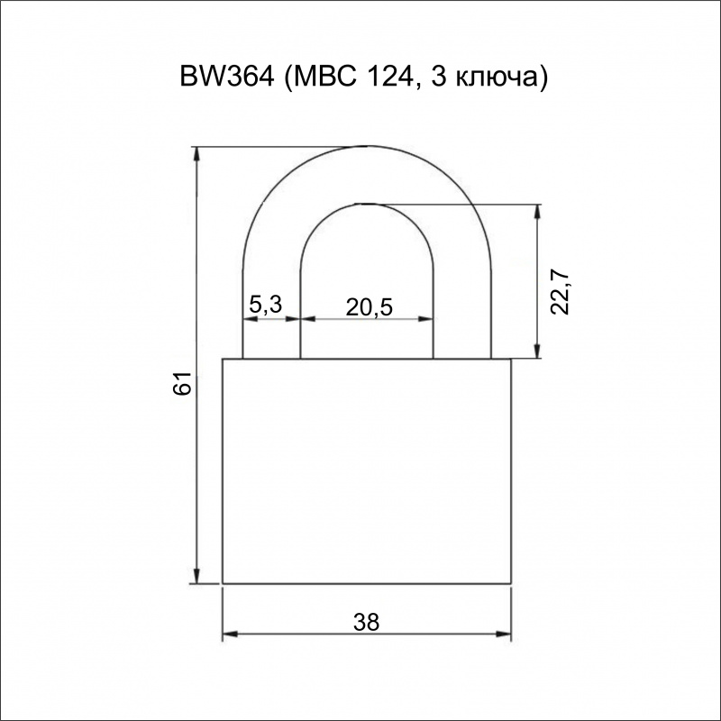 Замок навесной VETTORE BW364 (МВС 124, 3 ключа) MP (Порошковый)