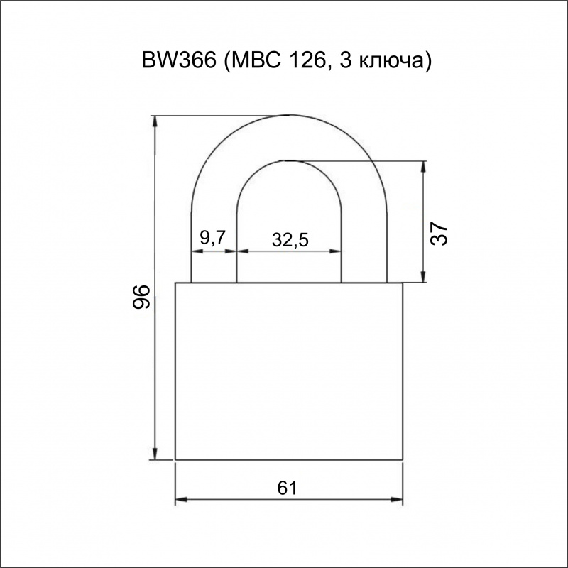 Замок навесной VETTORE BW366 (МВС 126, 3 ключа) MP (Порошковый)