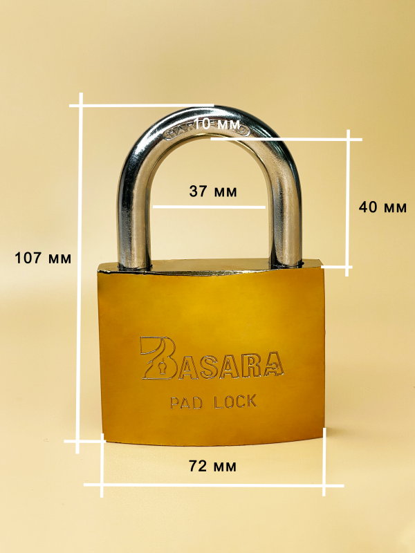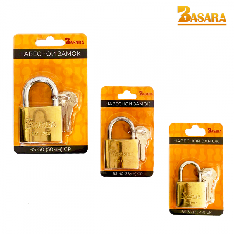 Замок навесной BASARA BS-70 (75 мм) GP (3 ключа) (Золото) — универсальный замок для использования в хозяйственных и подсобных помещения, подвалах, дачных постройках, распределительных щитках, почтовых ящиках, металлических шкафах.