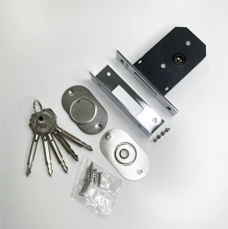 Врезной замок 1 ригель с крестовым цилиндровым механизмом.