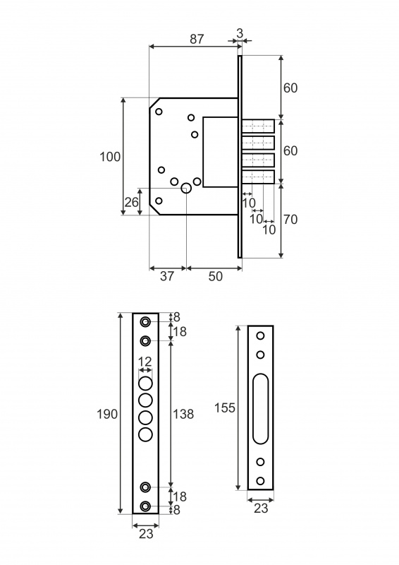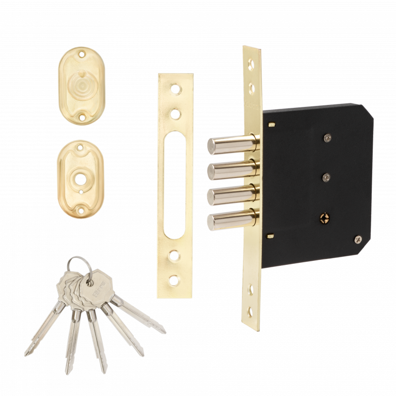Комплектация: - Корпус замка - 5 ключей - Ответная планка - Декоративные накладки - Комплект саморезов.