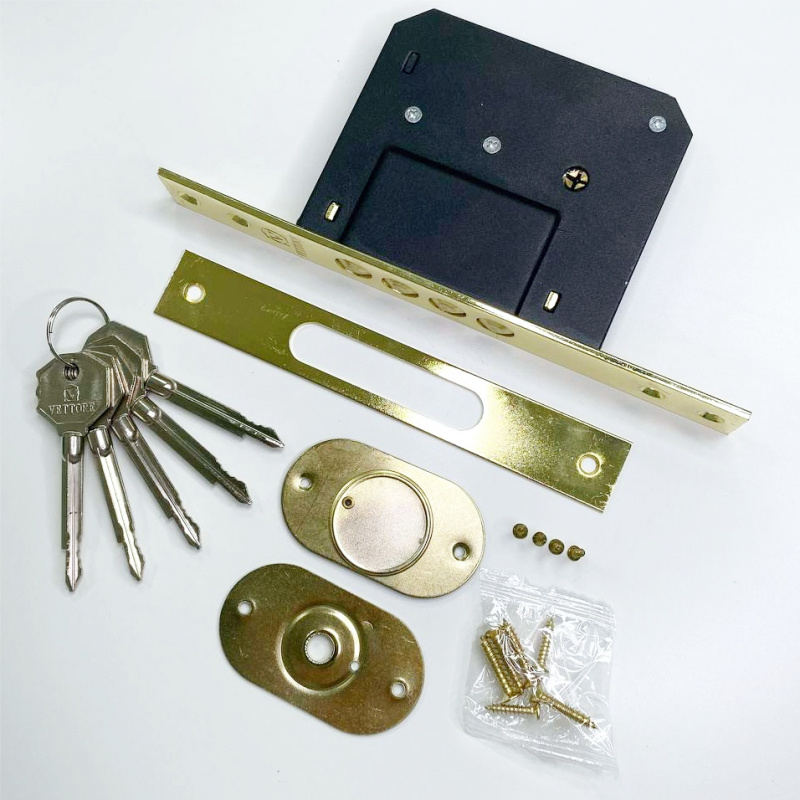 Замок врезной под крестовой ключ VЕTTORE 189 4MF GP (5 ключей) (Золото).