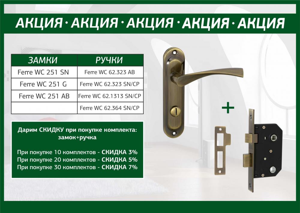 Дарим скидку при покупке комплекта для межкомнатных дверей (врезной замок + ручка на планке):