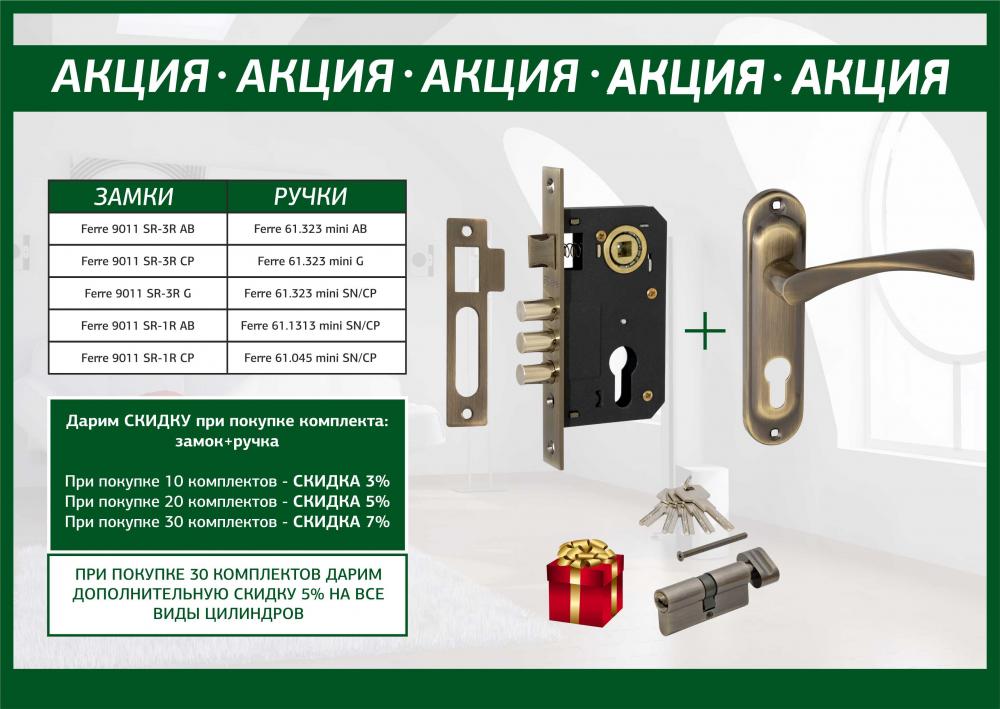 Дарим скидку при покупке комплекта для входных и межкомнатных дверей (врезной замок + ручка на планке):